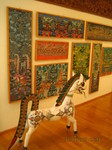 Leider meinte es das Wetter am nächsten Tag nicht allzu gut mit uns: es regnete. Zu Fuß ging es in 2 Gruppen vom Hotel aus zum Münter-Haus, wo die Malerin Gabriele Münter mit ihrem Lebensgefährten Kandinsky bis zum Ausbruch des 1. Weltkrieges gelebt hat. Nach der Trennung von Kandinsky reiste Münter viel, kam aber 1936 zusammen mit Johannes Eichner, ihrem neuen Partner, wieder endgültig zurück nach Murnau. Hier versteckte sie auch während des 2.Weltkrieges zahlreiche Bilder von sich und Kandinsky und rettete sie so vor der Vernichtung durch die Nationalsozialisten.