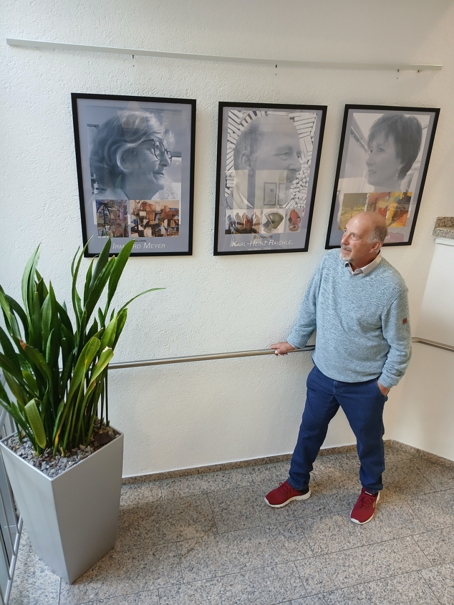 Dr. med. Karl-Heinz Raichle (Herrenberg) begann schon während seines Studiums mit dem Bearbeiten von Stein. Sein Thema lautet: „Etwas finden, was schon da ist,“ in der Form, im Material wie Speckstein oder Ytong. Bearbeitet werden die Skulpturen mit Feilen, Raspeln, Schleifpapier, danach teilweise weiterverarbeitet mittels Silikonguss, Farbe oder Wachs. K.H. Raichle hatte schon verschiedene Bildhauer-Ausstellungen