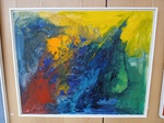 Sabine Wowra (Böblingen) begann in den 1980er Jahren mit der Ölmalerei in Austin/Texas. Sie absolvierte Kurse an der VHS und Malreisen u.a. Malen im Tessin. 1983 begann sie mit der Aquarell- und Acrylmalerei. In der neueren Zeit beschäftigt sie sich mit der Lackmalerei. Ihr Hauptthema ist „das Spiel mit den Farben“, wobei jedoch eine Gesetzmäßigkeit zu erkennen ist. Die jeweilige Lackfarbe aufgespritzt, verfließt, überfließt aufgestreute Elemente, kollidiert mit anderen Farben und erstarrt schließlich. Auch S. Wowra hatte schon vor 10 Jahren in Nufringen ausgestellt und bis heute zahlreiche Ausstellungen im In- und Ausland.